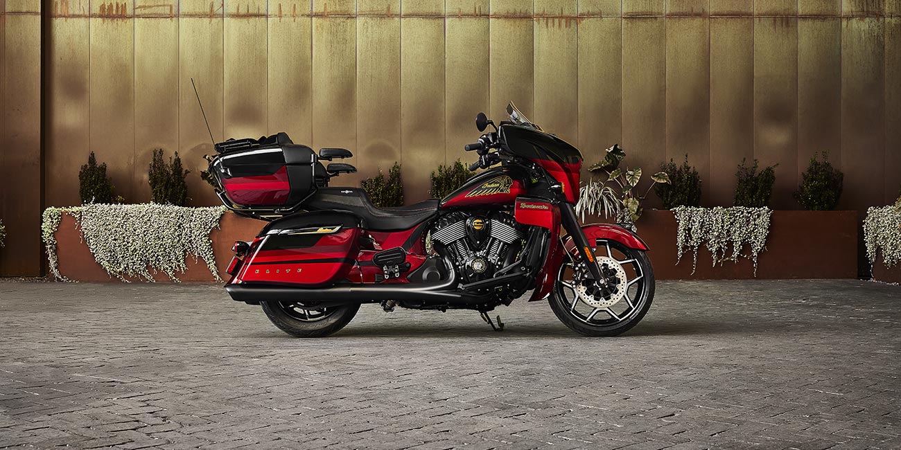 | Wyposażenie standardowe | 7-calowy wyświetlacz zasilany przez RIDE COMMAND®; Elektryczna szyba przednia; Światła drogowe; Podświetlane kostki przełączników; Wysokiej jakości szyte siedzisko H/C; Podgrzewane manetki; Regulowane deski podłogowe dla pasażerów; 36,2 galona miejsca do przechowywania; Monitorowanie ciśnienia w oponach; Twarde sakwy i bagażnik; Możliwość wyboru trybów jazdy; Dezaktywacja tylnego cylindra; ABS; Tempomat; Zapłon bezkluczykowy; System audio o mocy 600 W z AM/FM, Bluetooth, USB, wejściem kompatybilnym ze smartfonami i pasmem pogodowym; Port ładowania 12 V |