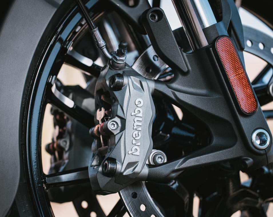 | Hamulce przednie | Zaciski Brembo®, podwójne dwuczęściowe tarcze hamulcowe: 320 mm x 5,0 mm |